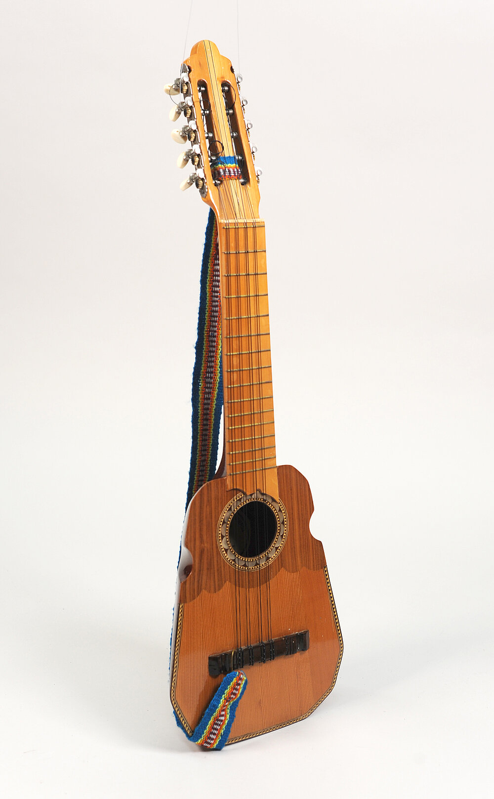 Gedruckter Zettel: "FABRICA DE INSTRUMENTOS DE CUERDA | Wajtamasi | de [hs.] JOSE [gedr.] Ferrufino Alba | Charangos Guitarras | Sampoñas Quenas | Bombos | Av. Boliver | Aiquile – Bolivia"
