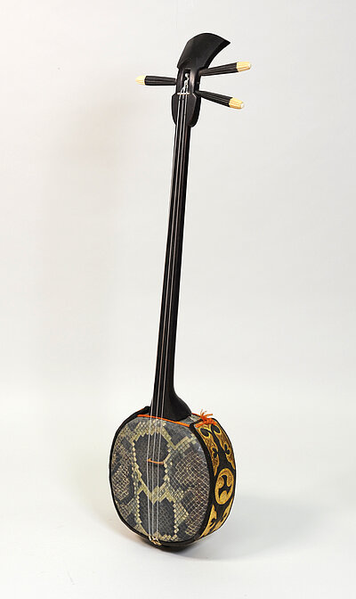 Textilbespannung des Korpus mit aufgedrucktem Schlangenhautmuster.