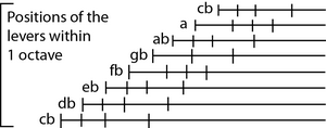 Stimmhebel: an der untersten und obersten Saite 1; an den restlichen 2, meistens 3.