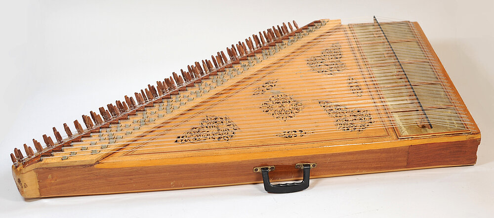 Qānūn, trapezförmige Kastenzither, verbreitet vom Kosovo, Albanien, Griechenland (kanonaki) über die Levante bis Armenien und Nordafrika bis zum Maghreb.