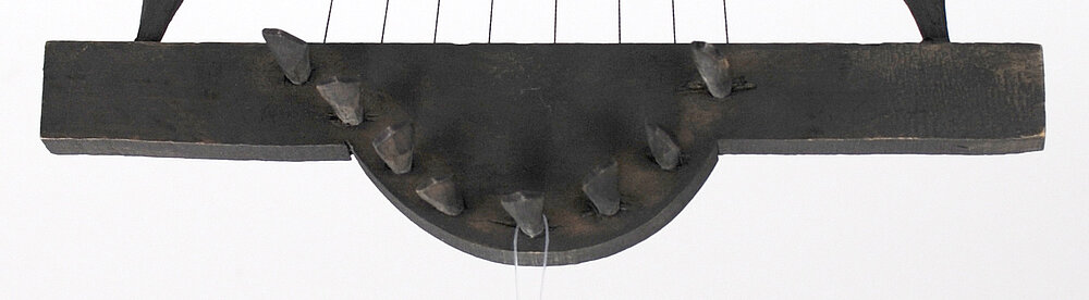 Joch: Brettchen mit mittiger Halbrundform, in deren Verlauf die hinterständigen Steckwirbel angebracht sind