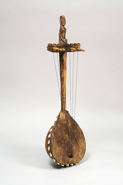 Kürbisresonator, Fellmembran, Kaurimuschelverzierung