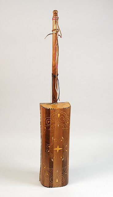 Resonator: Holzteller als Resonator, beiseitig mit Tierhaut bespannt