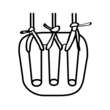 3 Saiten; ein gerader und zwei diagonal hinterständige Mischwirbel.