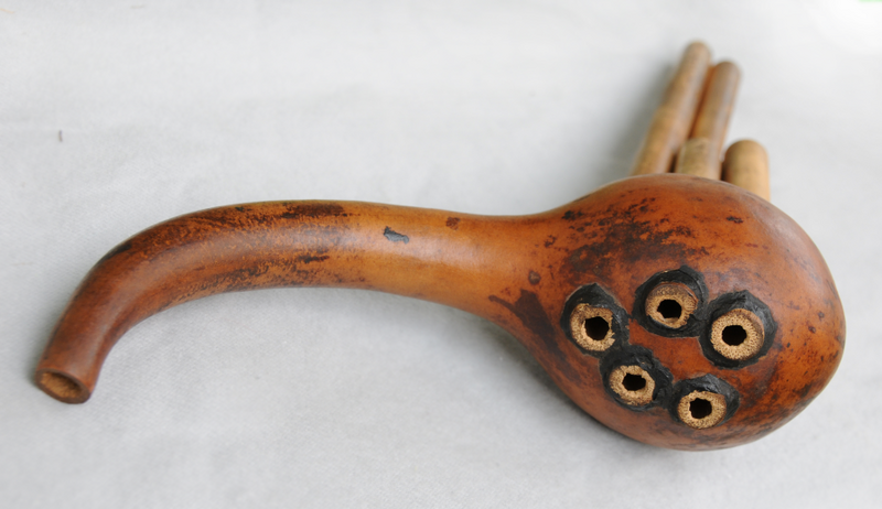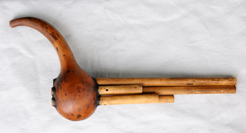 (1) Kürbiswindkapseln: kledi oder sumpotan, darin unterschiedlich viele Pfeifen (parallel oder kreisförmig angeordnet);