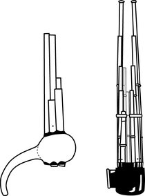 Eine ähnliche Bauform (bei anderer Tonerzeugung und wirklichen Grifflöchern) hat die Windkapselklarinette mit Kürbiskalebasse: vgl. die indische Pungi (mit Melodie- und Bordunrohr), bzw. die indonesische Windkapselklarinette (nur Melodierohr) De 480.
