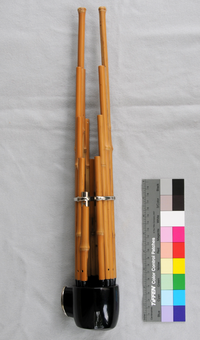 Saenghwang (Saeng, 생황), Korea. Direkte Ableitung von der chinesischen Sheng. Das Instrument wurde während der Goryeo-Periode (918–1392) als saeng (생; 笙) or u (우) bezeichnet.
