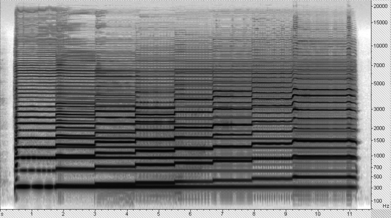 316,6 Hz (dis1 +31 Cent) – sinkt bei steigenden Intervallen zunehmend bis min. 311 Hz (dis1 -1 Cent)