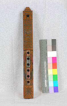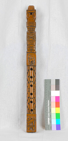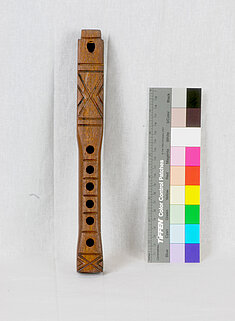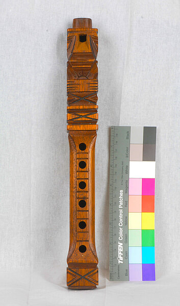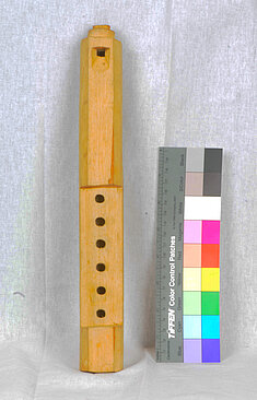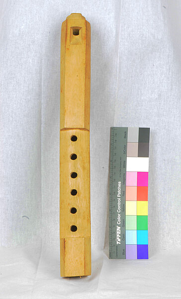 Lo 65: 328 mm (482 Hz, h1). Vom Austritt zum untersten Griffloch: 51 mm, bis zum obersten: 156 mm, bis zur Labiumskante 294 mm.