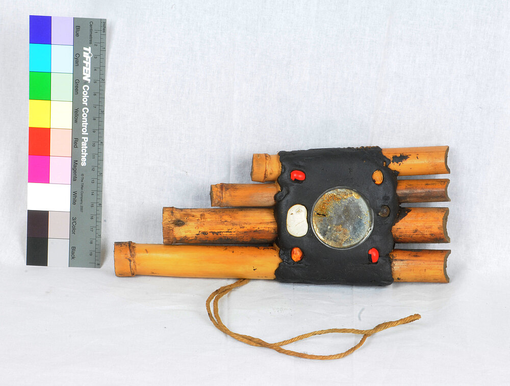 Maizu (mit Spiegel) oder "Zampoña de Doble Bisel" (Mapa 1978, 194), aus Cusco y La Convenciòn