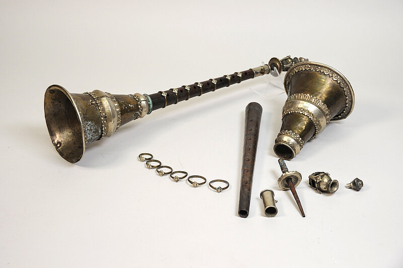Trichter aus Neusilber, Stürzenkranz und Wülste aus Messing