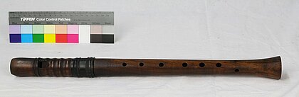 Zapfenbelag aus Faden. Pflock rund, im Kopf, wohl aus Pflaume. Labium am Kopf, rechteckig. Labiumhöhe: 0.54 cm; Labiumbreite: 1,30 cm