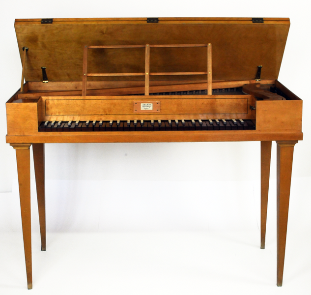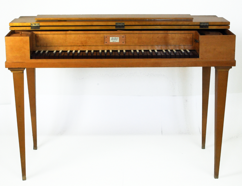 Das Gehäuse, rechteckig, mit einspringender Klaviatur, besteht aus massivem Ahorn, Unterboden aus Fichte. Vier Beine mit Fußklötzen aus Ahorn. Das Instrument besitzt, bei einem Umfang von Kontra-F bis f3, einen geteilten Lautenzug (Teilung bei c'/cis'). Gesamtlänge: 112,1 cm; Gesamtbreite: 51,8 cm; Gesamthöhe mit Beinen und Deckel: 80,0 cm. (Vgl. Thomas Jürgen Eschler, Die Sammlung historischer Musikinstrumente des Musikwissenschaftlichen Instituts der Universität Erlangen-Nürnberg, Wilhelmshaven 1993, S. 72.) – Beine mit Ahorn furniert, unten mit Putzwasserschäden.
