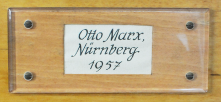 Otto Marx (1871–1964) zählt zu den wichtigsten Restauratoren historischer Instrumente in der ersten Hälfte des 20. Jahrhunderts. Als jüngster von fünf Söhnen des Klavierbauers Carl Gottlieb Marx in Dresden, erlernte er den Beruf des Vaters, arbeitete u.a. in Stuttgart bei der Firma C. A. Pfeiffer, wo er u.a. bei der Herstellung historischer Klaviermechanikmodelle tätig war. 1909 stellte ihn Wilhelm Heyer als Restaurator seines privaten Musikmuseums in Köln an. Marx folgte der Heyer-Sammlung 1926 an die Universität Leipzig, die sie erwerben konnte. Seit 1930 hatte er engen Kontakt zu Ulrich Rück in Nürnberg, für den er als Restaurator historischer Musikinstrumente zunächst auf Honorarbasis von Leipzig aus, seit 1952 in Nürnberg im Pianohaus Rück, bis ins hohe Alter von 89 Jahren tätig war. Marx restaurierte vor allem Hammerklaviere, etwa den Anton-Walter-Flügel aus dem Besitz Wolfgang Amadé Mozarts, Kielklaviere und Clavichorde. Marx fertigte für Heyer, später für Rück, einige Kopien historischer Instrumente an. Beim Instrument unserer Sammlung handelt es sich um einen Eigenentwurf, die Verwirklichung eines Wunschtraums, eines kompakten Instruments mit geteiltem Lautenzug (zur Klangfarbenteilung zwischen Bass und Melodie).