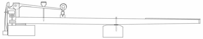 Züge: Zwei Kniehebel, links Dämpferaufhebung, rechts Moderator. Moderatorleiste aus Fichte mit schwarzen Tuchstreifchen (neu). Der Moderator wird erst mit Betätigung des Kniehebels (rechts) aufgehoben. (Dies entspricht der Dramaturgie der Klangentfaltung in der Cramerschen Beschreibung: "forte" ist der zu entbergende Effekt.) Hebelei am Unterboden und im Klaviaturraum aus Fichte (Moderatorhebel innen neu), Gegendruck beim Moderatorhebel innen erfolgt durch Messingdrahtfeder (siehe Bild).
