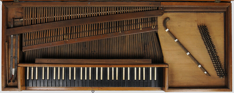 Tafelklavier mit einfacher englischer Stoßmechanik ohne Auslösung (single action, "Zumpe-Mechanik"). Vgl. auch das Tafelklavier von Meincke und Pieter Meijer (1780) StW12, ferner Mechanikmodell. Das Klavier ist ein Beleg für die Verbreitung der englischen Stoßmechanik in der Provinz des europäischen Festlandes.