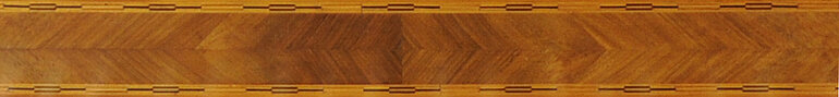 Vorsatzbrett aus Fichte mit Kirschbaumfurnier mit Intarsien im Mittelfeld wie Klavierbacken und