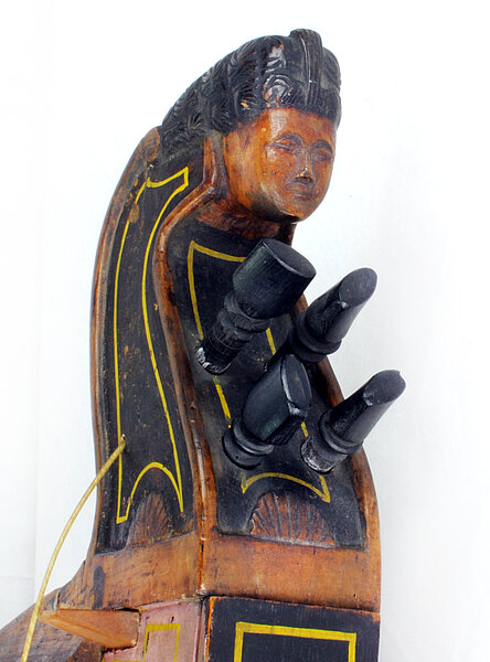 aus Ebenholz. Als Kopf ein volllockiges weibliches Gesicht.
