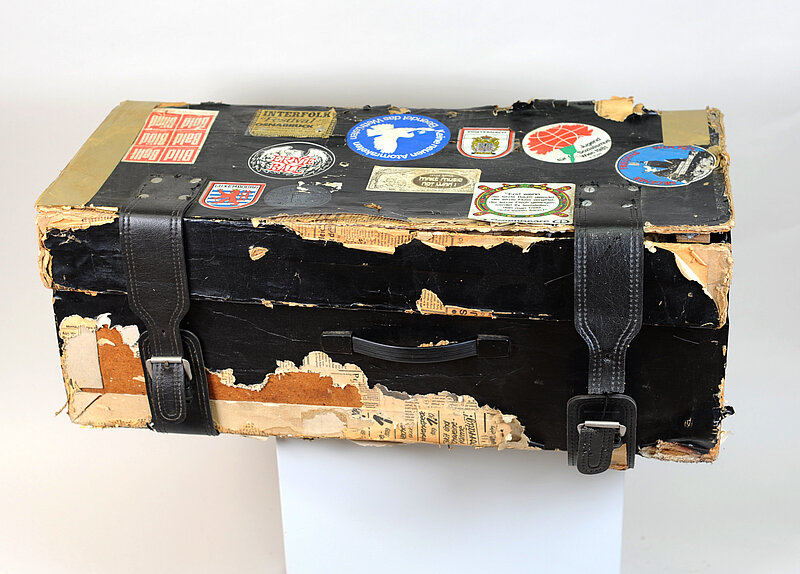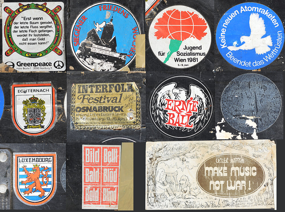 Bei diesem Objekt ist der Koffer mit seinem passgenau zugeschnittenen Schaumstoffschutz, vor allem aber durch die Sticker der 1980er Jahre für die Objektgeschichte immens wichtig, da er das poltische Milieau des ehemaligen Besitzers zeigt. Der Spieler hat es offenbar nicht nur bei Folk-Festivals eingesetzt, sondern auch bei politischen Demonstrationen von Greenpeace und anderen NGOs. Koffer und Sticker sind daher unten zusammengestellt. Eine Nachdokumentation dazu ist in Arbeit.