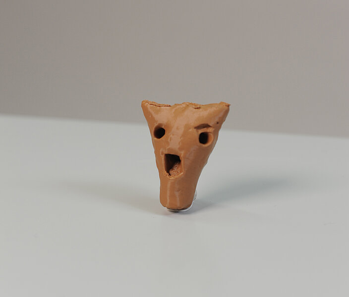 Replikat der Gefäßflöte von Uruk mit Rekonstruktion des Labiums (Original: Uruk-Warka-Sammlung der Universität Heidelberg, W 21790). 3D-Druck für die Sonderausstellung "MUS-IC-ON! Klang der Antike" im Martin von Wagner Museum. Hergestellt 2019 von Johannes Väthjunker. LBT 4,6 x 3,9 x 2,2 cm