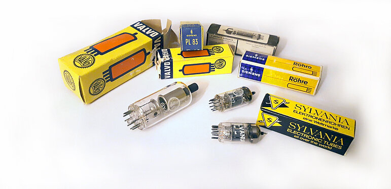 Elektronenröhren werden zur Erzeugung, Gleichrichtung, Verstärkung und Modulation elektrischer Signale verwendet. Aus der Glühkathode treten negativ geladene Elektronen aus, die durch die Wirkung eines elektrischen Feldes zur Anode bewegt werden. Dieser Elektronenstrom lässt sich durch ein Steuergitter zwischen Kathode und Anode beeinflussen. Er wird durch unterschiedliche Gitterspannungen bzw. elektrische Felder verlangsamt und gesteuert. Die Elektronenröhre ist ein aktives elektrisches Bauelement mit Elektroden, die sich in einem evakuierten oder gasgefüllten Glas- Stahl- oder Keramikkolben befinden. In ihrer einfachsten Form als Diode enthält eine Elektronenröhre eine Glühkathode und eine Anode.