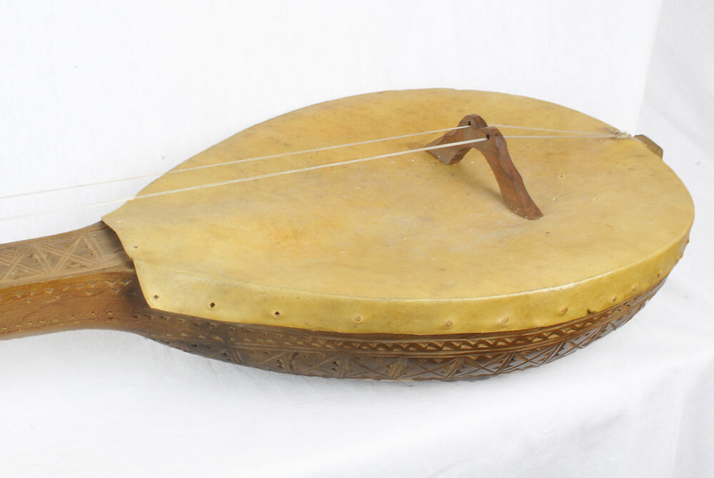 Bemerkenswert ist die Saitenbespannung aus zwei Rosshaarbündeln, die auf den gleichen Ton gestimmt werden. Gestrichen wird das Instrument mit einem hölzernen Rosshaarbogen. Die Rückseite des Resonanzkörpers ziert ein geschnitztes Blumenmuster sowie Rosetten. Die Saiten, welche über einem am Resonanzkörper angebrachten Steg laufen, werden mit einem halbmondförmigen, oftmals verzierten Bogen gestrichen. Die Saiten sind so weit vom Hals entfernt sind, dass sie nicht auf den ihn herunterdrückt werden können, folglich werden sie frei gegriffen. Dadurch ist nur ein kleiner Ambitus verfügbar und eine kleinschrittige (sprachähnliche) Melodik möglich. Da der Resonanzkörper keine Schallöffnung aufweist, ist der Klang des Instruments gedeckt und nasal. Die Saiten werden durch zwei Bohrungen im Steg geführt.