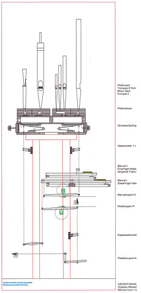 W 10: maßstabsgetreues Modell einer Orgelmechanik