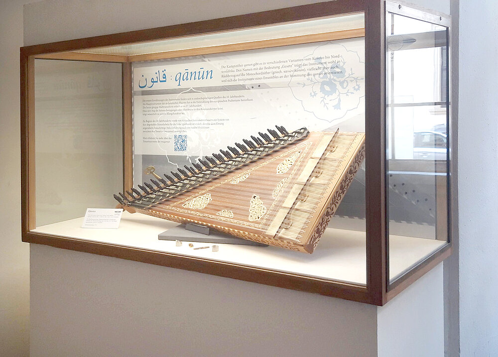 Siehe auch: Hörstation Maqam aus der Ausstellung "Syrische Tonspuren in Würzburg" Juni 2022 im Rahmen des Mozartfests Würzburg, bei der das Instrument als Hands-on-Objekt ausgestellt war. Das Instrument ist, kommentiert durch den Instrumentenkunde-Kurs Sommer 2024, Objekt der Semestervitrine Winter 2024/25.