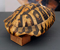The invention myth of the lyre is linked to the turtle. According to Empedocles and Plutarch, as a living animal mute (anaoudos), it can “sing” only after its death. In the Homeric Hymns (prob. 7th century BC), Hermes, who has just slipped out of the cradle, finds the animal—the „lovely toy“—on Mount Kyllene in front of the cave, disembowels it, and builds the lyre with wooden arms, yoke, cowhide, and seven strings of sheep gut. Then he sets out to steal his brother Apollo’s herd of cattle, slaughters two cows, thus 'inventing' the animal sacrifice.