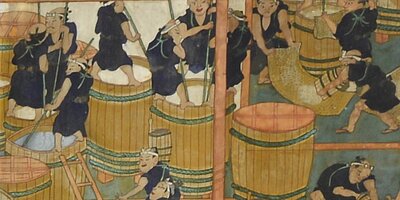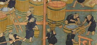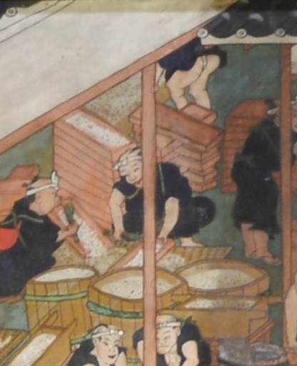 Abb. 10: Herstellung der Hefe. Detail aus der Holzmalerei im Matsuo-Schrein, 1883. (vgl. Abb. 1.).