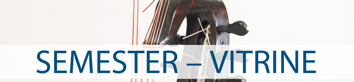 Die Semestervitrine der Studiensammlung Musikinstrumente & Medien steht im Eingangsraum zum Hörsaal III in der Würzburger Residenz. Sie dient als Experimentierkasten für das Instrumentenkunde-Seminar des Instituts für Musikforschung. Und als Einladung zum Schauen, Lesen, Hören und zur Kritik. Jedes Semester gibt es hier eine kommentierte Objektgruppe aus der Sammlung zu entdecken. Mit dem Smartphone sind vor Ort zusätzlich Texte, Bilder und Klänge abrufbar.
