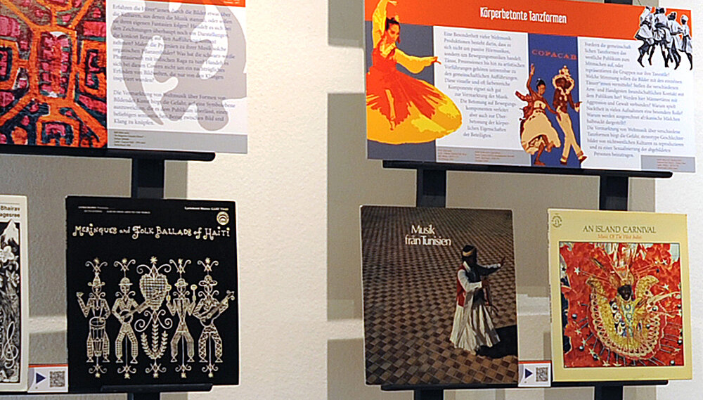 Wintersemester 2023/24: Die Semestervitrine wird erstmals genutzt als Planungsinstrument für die Plattencoverausstellung "Faires Zusammenspiel? Weltmusik in Bildern". Die Ausstellung findet im Februar 2024 im Weltladen Würzburg statt (Nachdokumentation hier).