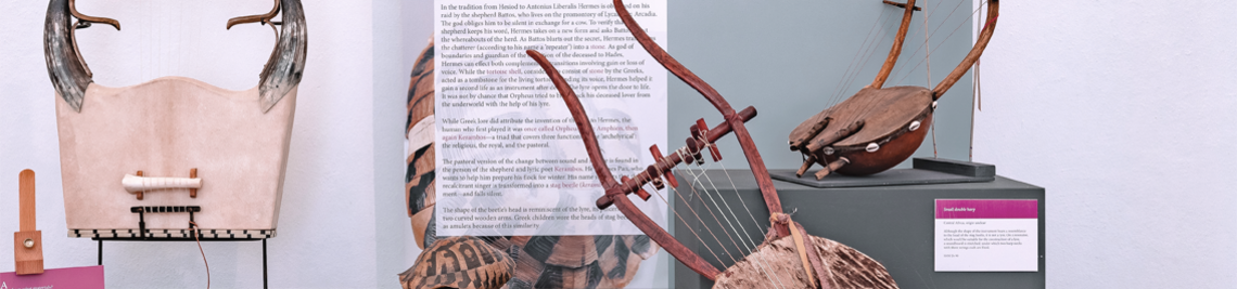 Sommersemester 2024: Eine Station der Ausstellung "Musical Animals & Instruments" (September 2023; Nachdokumentation hier). Material, Zoomorphismus, Tiersymbolik, Soundscapes, das Tier im Anthropozän: Wann kam das Kuhhorn nach Südamerika, warum spielen Esel Leiern, was singen die Knochen? Wie viel haben Tiere mit Musik zu tun? (Nachdokumentation hier.)