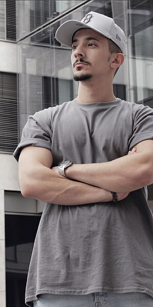 2019 produzierten Track „Wer bin ich?“ mischen sich in den Straßen von Nürnberg gefilmte Szenen mit Erinnerungen aus seinem Heimatland: „Wer sind wir? Was ist unsere Zukunft?“ und „Lass mich leben, lass mich Ich sein“, rappt er dort auf Arabisch, eingerahmt von Aufnahmen syrischer Kinder, die von ihren Berufswünschen berichten: Friseurin, Arzt, Ingenieur, Fußballspieler…