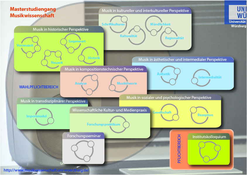 Vergangene, aktuelle und jeweils gegen Semesterende künftige Lehrveranstaltungen finden Sie im Online-Vorlesungsverzeichnis der Universität Würzburg -> Online-Vorlesungsverzeichnis -> oben rechts Semester wählen -> Philosophische Fakultät -> Musikwissenschaft -> Master.